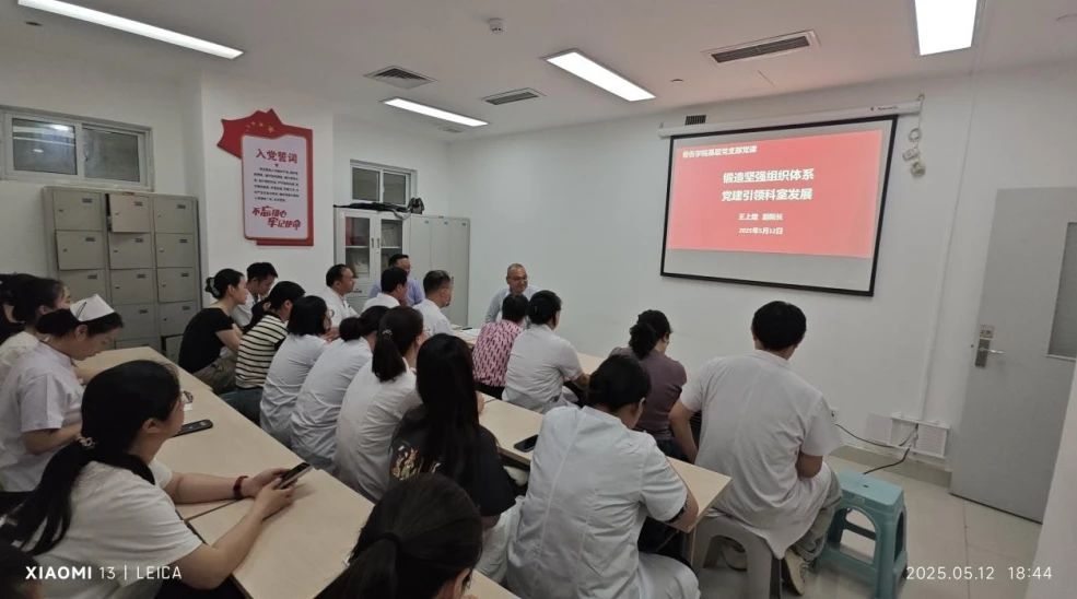 为深入学习贯彻党的二十大和二十届二中、三中全会精神,深化基层党组织建设,推动党建与业务深度融合,2025年5月12日,我院副院长王上增走进风湿病一科,为风湿病诊疗中心支部全体党员及业务骨干讲授题为《锻造坚强组织体系,党建引领科室发展》的专题党课。本次活动旨在通过党建引领激发科室发展内生动力,凝聚奋进共识,为新形势下医院高质量发展注入新动能。
