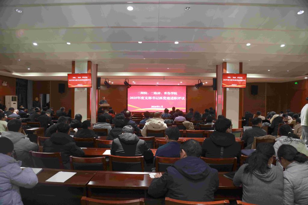 坚持和加强党的全面领导,夯实基层党建工作基础,落实医院学院管党治党政治责任。2026年1月19日下午,我院在行政办公楼一楼会议室召开2025年度支部书记抓党建述职评议会议。医院领导班子、党总支书记、支部书记、党员代表等200余人参加会议。会议由党委副书记陈戈主持。