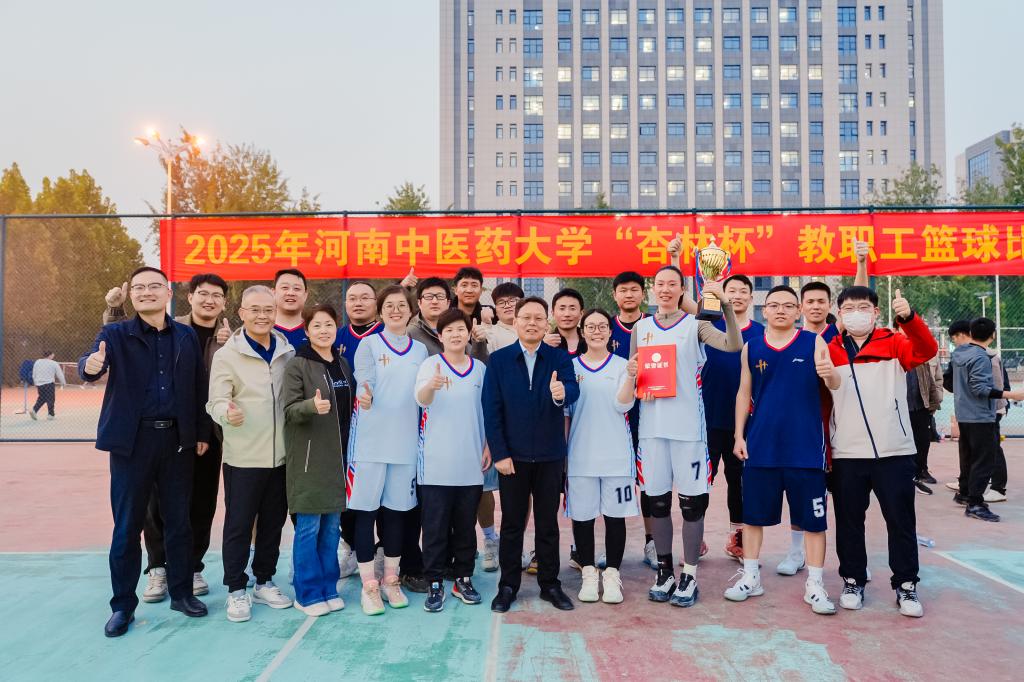 在河南中医药大学2025年“杏林杯”教职工篮球比赛中,在赛场上表现出色,成功蝉联男子篮球比赛冠军。
