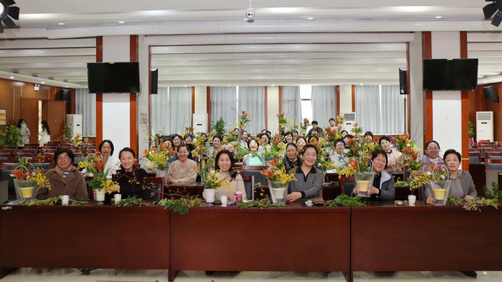 以花为媒,品韵传香。为弘扬中华优秀传统文化,丰富女职工精神文化生活,3月6日下午,院工会在教学办公楼一楼会议室举办中国人文花道文化体验活动,40 余名女职工代表受邀参加,共赴一场春日花艺之约。活动现场,插花老师朱明增结合专业史料,生动讲解了插花流派的历史渊源与发展脉络,从传统花艺的文化内涵、审美理念到实操技巧,层层深入、娓娓道来。随后,朱老师进行插花技艺现场示范,细致演示花材修剪、色彩搭配、造型构思等核心要领,现场花香四溢、暖意融融,大家相互交流心得、分享创作灵感,原本普通的花材在巧手中逐渐成形,一件件清新雅致、独具匠心的花艺作品陆续呈现。此次活动既让女职工们近距离感受传统花艺的雅致魅力,舒缓了日常工作压力,也提升了审美素养与艺术鉴赏能力。