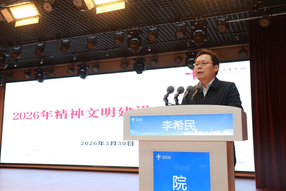 3月30日下午,我院召开2026年精神文明建设工作会议,总结回顾全国文明单位创建成果,分析当前形势任务,着重部署了2026年重点工作。全体班子成员、全院中层干部、护士长等200余人参加会议。