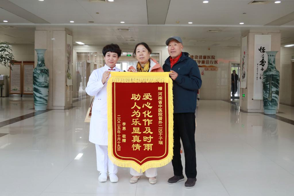 爱心化作及时雨,助人为乐显真情——我院普外二科护士长于子瑞获赠致谢锦旗