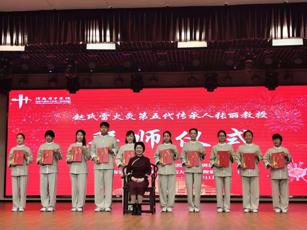 随后,现场举行了庄重的国家级非物质文化遗产--赵氏雷火灸传承基地授牌仪式与第五代传承人张丽教授拜师仪式,标志着我院在雷火灸技艺传承上的正式授权与认可,同时也表达了对传统师承文化的敬重,更是确保赵氏雷火灸这一传统技艺得以传承与广泛弘扬的关键举措,诠释了中医护理技艺薪火相传、生生不息的传承真谛。