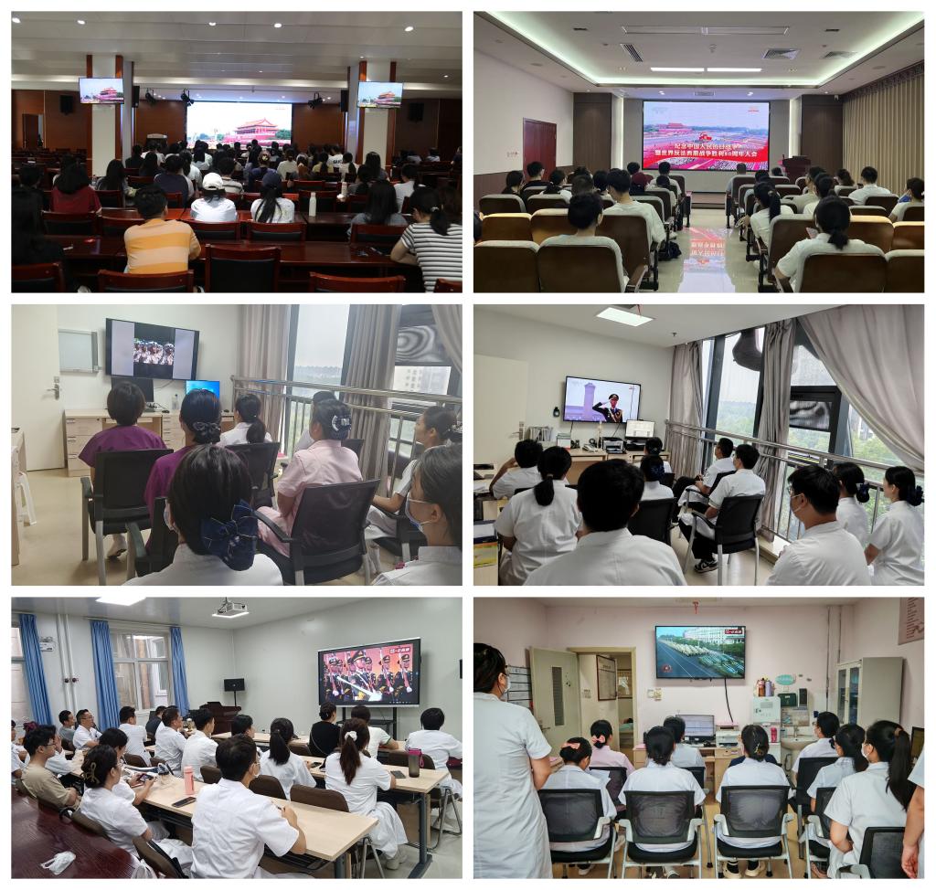 医院党委理论学习中心组集中(扩大)学习会在行政楼三楼会议室举行,与会人员集中收听收看大会直播,带头感悟历史伟力、凝聚思想共识。与此同时,医院开设多个分会场,组织全体教职工生同步收听收看,引导大家从历史深处汲取奋进力量,进一步强化 “铭记历史、开创未来” 的使命担当。