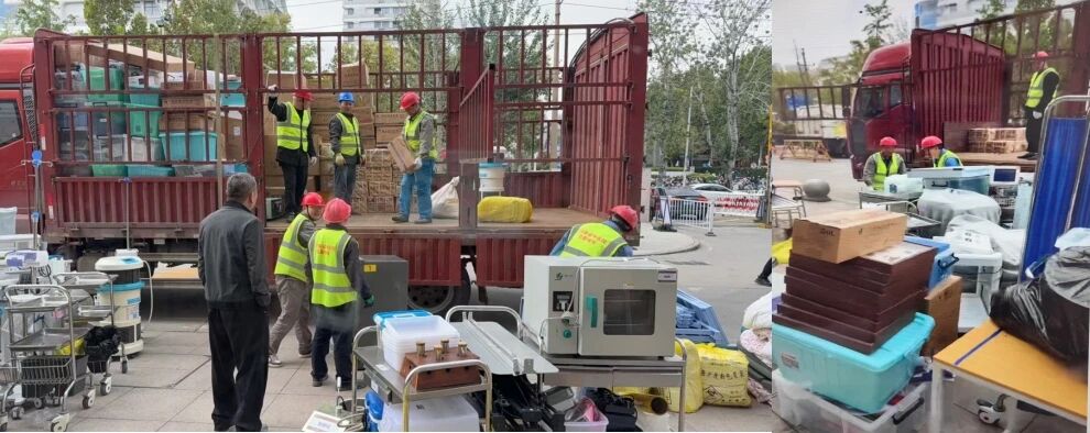 此次搬迁的工作,离不开兄弟部门的鼎力支持。后勤保障部在总务部姚韧松主任的协调下,林祥龙老师迅速安排转运车辆与人员,牺牲周末时间协助搬运大件物资,为搬迁提供了有力支持。转运途中,医护人员全程守护在病床旁,密切观察输液管、监护仪等设备运行,确保特殊患者途中安全。先期抵达五龙口院区的医护人员,在安顿好患者后,又立即投入仪器调试、病房整理工作,争分夺秒只为门诊与病房能尽快恢复接诊。从始至终,全科上下心往一处想,劲往一处使,用汗水与坚守践行着“敬佑生命、爱岗敬业”的职业精神。