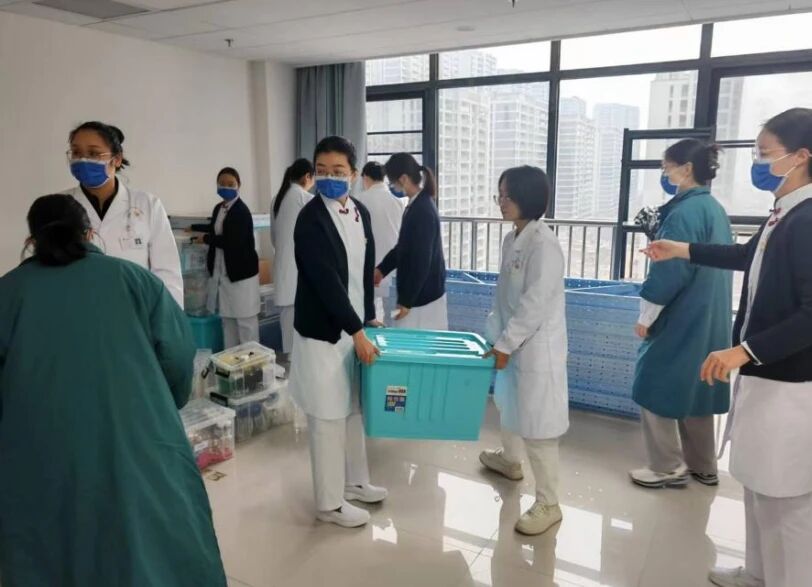 周末,陈志娟护士长指挥加班的医生、护士有条不紊地整理物品