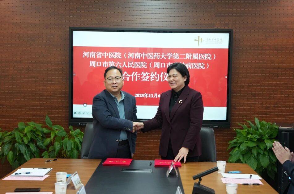 11月6日上午,我院与周口市第六人民医院合作签约仪式在河南省中医院隆重举行。此次合作旨在充分发挥省级优质医疗资源的辐射带动作用,推动医疗资源共享与协同发展,为周口地区群众提供更加优质、便捷的中医药服务。