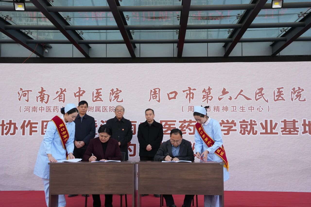 在与会领导的共同见证下,杜旭召副院长与师瑞霞院长签署了“高水平专科建设合作协议”及“河南中医药大学就业基地协议”;陈建设副院长、杜旭召副院长与王玉栋调研员、师瑞霞院长共同为“河南省中医院(河南中医药大学第二附属医院)协作医院”及“河南中医药大学就业基地”揭牌。