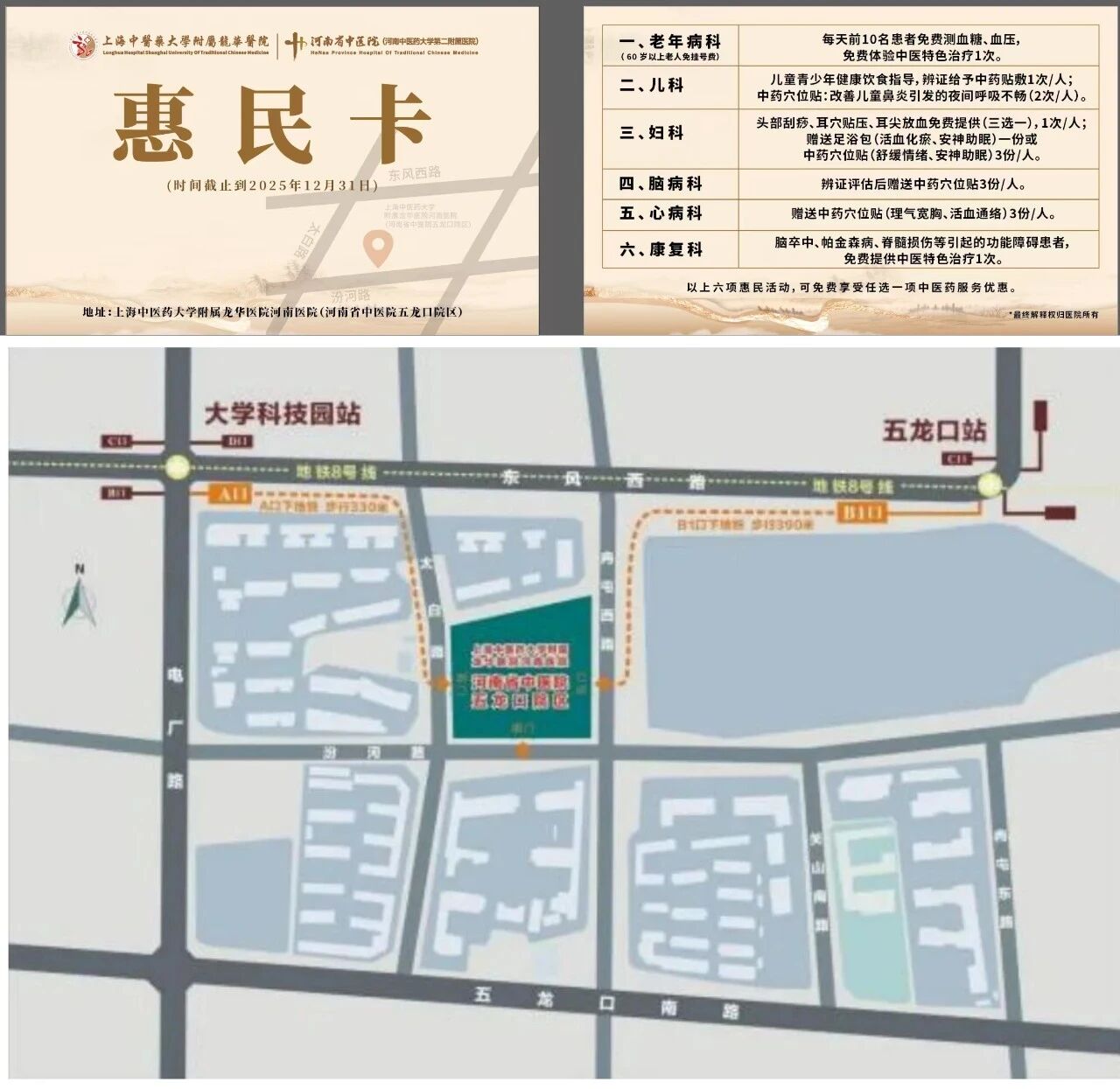 2. 六大专科专属权益:凭老年病科免费测血糖血压、儿科中药贴敷、妇科免费刮痧/耳穴贴压三选一,脑病科、心病科赠送中药穴位贴,康复科为卒中、帕金森等功能障碍患者提供免费中医特色治疗。(具体内容如以下惠民卡)