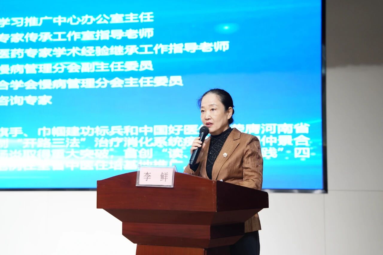 河南省中医经典学习推广中心办公室主任李鲜教授在讲话中衷心祝贺各位青苗人才加入河南中医药事业,望大家深研经典、勤于临床、勇于探索,将中医思维的根系扎深扎牢,为未来的临床实践与创新积淀厚实底蕴。并指出,“中医经典大讲堂”就是通过经典诵读、青年医师汇报+点评、专家授课+点评的形式践行着“读-辩-悟-践”四字教学,期望更多的同仁加入经典学习中来。