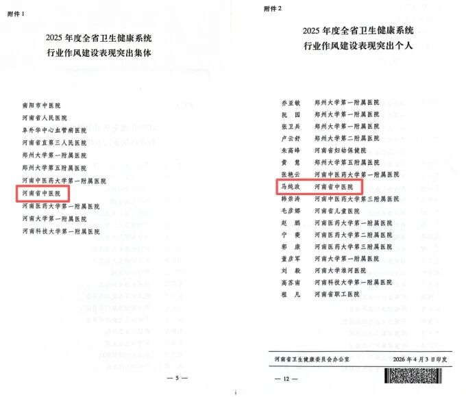 近日,河南省卫生健康委员会印发《关于对在2025年度全省卫生健康系统行业作风建设中突出集体和个人进行表扬的通知》,我院获“2025年度全省卫生健康系统行业作风建设表现突出集体”,肿瘤二病区马纯政同志荣获“2025年度全省卫生健康系统行业作风建设表现突出个人”,这是医院继荣获“清廉医院创建行动示范单位”后,连续两年获得省级行风建设荣誉,彰显出医院在行业作风建设上的扎实成效与责任担当。