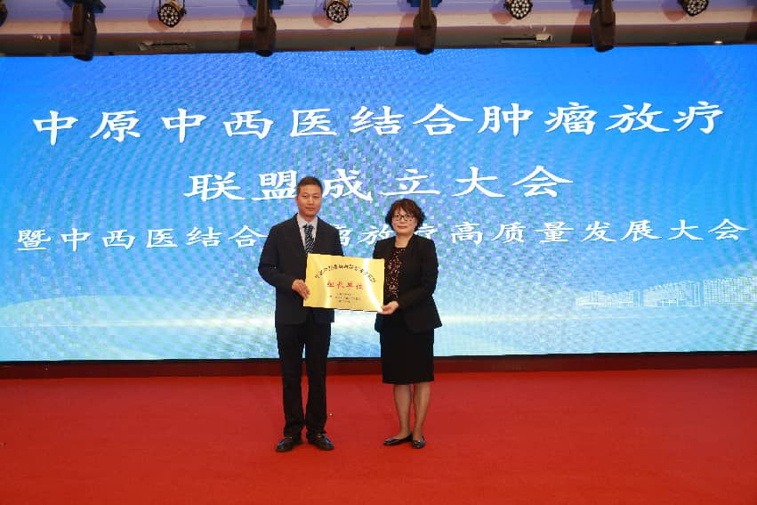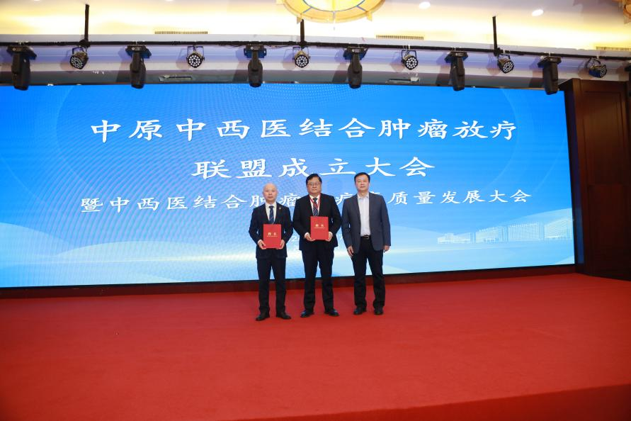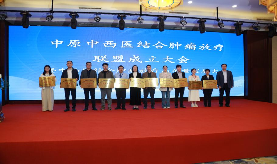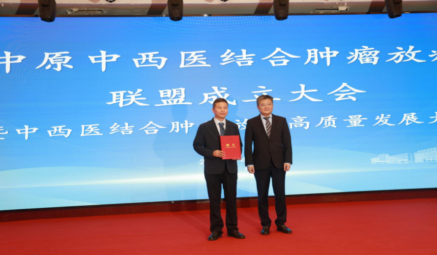 4月17日,由我院主办的中原中西医结合肿瘤放疗联盟成立大会暨中西医结合肿瘤放疗高质量发展大会在郑州举行。本次大会聚焦中西医结合肿瘤放疗领域前沿技术,汇聚省内外权威专家,共促区域肿瘤放疗诊治水平的提升。河南省卫生健康委中医医政处主任朱恪岩,中华医学会放射肿瘤治疗学分会第十届主任委员、北京大学第三医院肿瘤放疗科主任王俊杰,上海中医药大学附属龙华医院院长陈昕琳、副书记高炬,郑州大学第一附属医院学术副院长万香波,河南省中医院院长冯晓东、副院长杜旭召,上海中医药大学附属龙华医院河南医院执行院长马超,上海中医药大学附属龙华医院河南医院副院长董亮,上海中医药大学附属龙华医院河南医院副院长钱建新,上海中医药大学附属龙华医院河南医院副院长马纯政,上海中医药大学附属龙华医院放疗科主任方庆亮,河南省肿瘤医院放疗科(部)主任葛红,河南省人民医院放疗科主任韩倩等领导以及省内外联盟成员单位领导共计150余人出席会议。