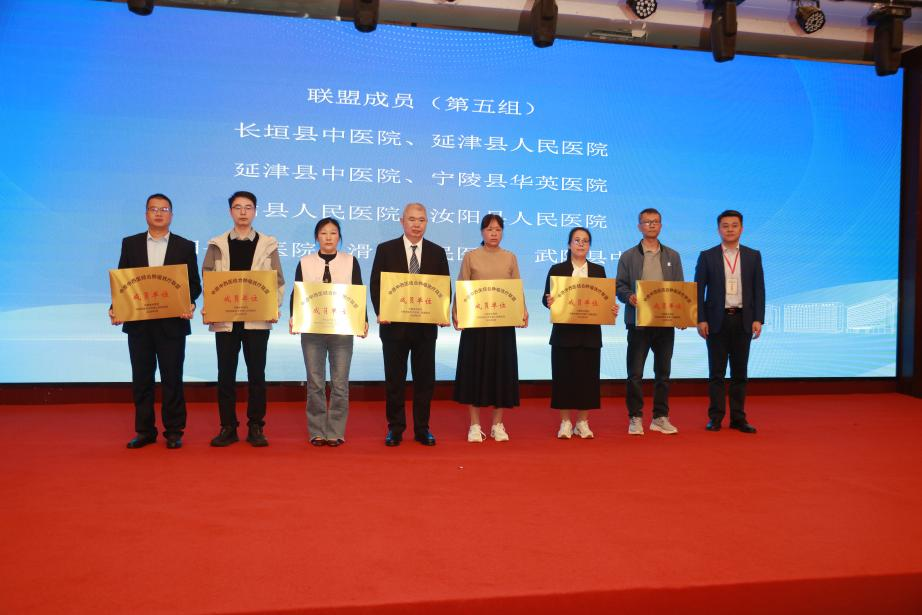 上海中医药大学附属龙华医院河南医院副院长钱建新为第五组联盟成员单位授牌(长垣县中医院、延津县人民医院、延津县中医院、宁陵县华英医院、嵩县人民医院、汝阳县人民医院、宜阳县中医院、滑县人民医院、武陟县中医院)
