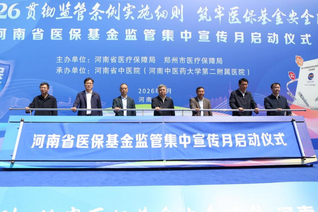 4月23日,2026年河南省医保基金监管集中宣传月活动启动仪式在我院举行。河南省医疗保障局党组成员、副局长陈忠,河南省卫生健康委二级巡视员郭茂华,省公安厅刑侦总队副总队长闫学斌,省药监局药品流通处二级调研员邓西方,河南中医药大学副校长任献青,郑州市医疗保障局党组书记、局长张超,河南省中医院党委书记刘金厂、院长冯晓东等班子成员,省市公立医疗机构、零售药店负责人和新闻媒体代表出席活动。仪式由河南省医疗保障局基金监管处处长程辉主持。