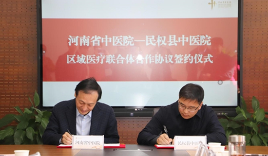 随后,河南省中医院院长崔应麟与民权县中医院院长李亮签署医联体合作协议。