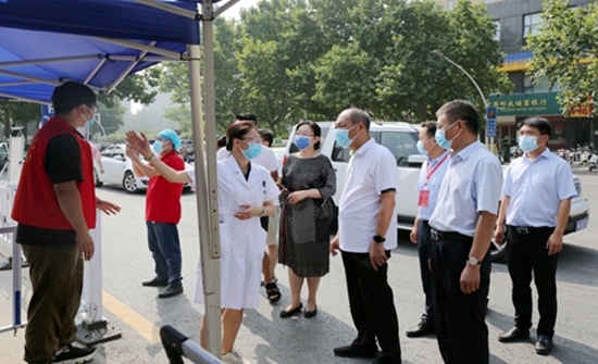 8月8日上午,医院党委书记王海亮、院长崔应麟等一行前往医院查看疫情防控志愿者服务站点。