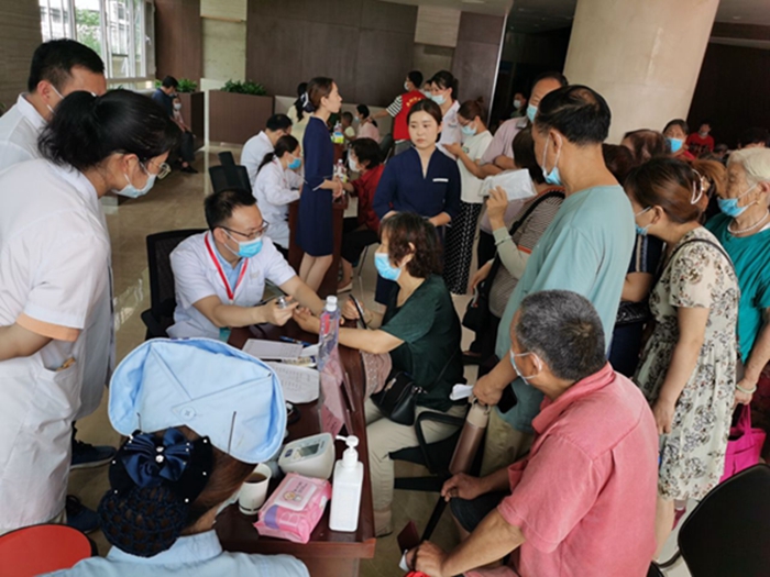 为贯彻落实河南省红十字会“红会送医369计划”,大力弘扬人道、博爱、奉献的红十字会精神,做好“送技术、送知识、送义诊”红会送医志愿服务活动,7月15日,在医院党委书记王海亮、工会主席李希民的带领下,医务部副主任郭喜钦、护理部副主任姚玉红、麻醉科主任郭云亮、妇产科副主任医师曹俊红、心病科副主任医师曾垂义、儿科副主任医师黄可丹、康复科副主任医师秦合伟、眼科副主任医师孙慧悦、内分泌科副主任医师孙新宇、放射科副主任医师张谦、肛肠科主治医师陈凯旋、感控科主治医师许磊等专家一行18人赴舞钢市中医院,进行为期三天的红会送医志愿服务活动。