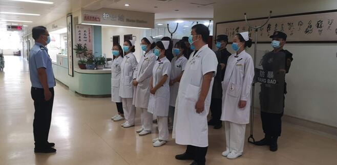 我院在收费室、护士站等重点部位配备一键报警系统,遇紧急情况可按下按钮进行报警,中心监控室在收到报警时立即通知巡逻队赴往现场,形成第一防护力量。