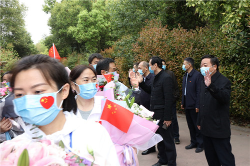 别荣海书记兴奋地说:“今天是特别开心的一天,非常高兴在这里欢迎大家回家。”他说,面对来势凶猛的新冠肺炎疫情,在国家和人民最需要的时候,医疗队响应总书记和党中央的号召千里驰援武汉,一寸痴心为报国,义无反顾赴一线!大家同时间赛跑、与病魔较量,不辱使命、不负重托,出色地完成了各项支援任务,用实际行动诠释了大爱无疆、医者仁心的崇高精神!他指出,队员们用精湛的医术,有力地彰显了中医药优势和价值,为传承弘扬中医药做出了卓越贡献。他赞扬队员们充分发挥临时党支部的战斗堡垒和党员的先锋模范作用,展现了河中医人特别能战斗、特别能奉献的精神风貌,是中医药行业和医疗战线的骄傲,是真正的勇士,是最可爱的人,是全校党员干部和师生学习的榜样!他向医疗队提出了三点希望:一是要调整好身体和精神状态;二是要积极总结、梳理中医药抗疫经验;三是继续发挥援鄂时的精神风貌,为夺取疫情防控和经济社会发展胜利做出更大的贡献。