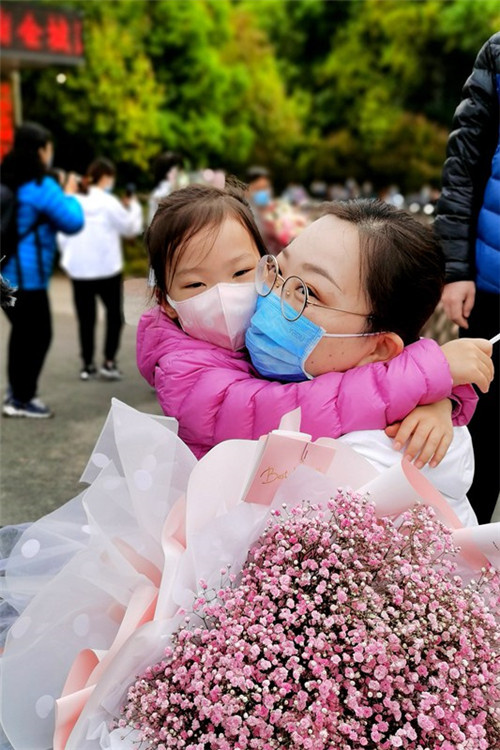 今日结束隔离的,是第三批、第五批国家(河南)中医医疗队员,共68人,其中我院56人。在这些队员中,年龄最小的24岁,最年长的58岁。在武汉江夏放舱医院,他们充分发挥中医优势救治病患,建设社区式的温馨病区。整个江夏方舱医院累计收治564名患者,创造了无一例转为重症、无一例出舱后复阳、无一例医护人员感染的优异成绩;中医专家郑福增、王育勤在休舱后在江夏普安山新冠肺炎康复驿站坐诊。两支医疗队分别于2月10、2月21日驰援武汉,3月17日完成任务后返回郑州,按照规定接受了为期14天的医学隔离观察。在欢迎现场,一些队员的家人也来迎接亲人回家,他们相拥而泣,场面十分感人。据悉,河南省中医院将为所有援鄂医疗队员放假,以便他们与家人团聚、休养身心。(文/廉万营 图/李艳丽 廉万营 卫秀英)