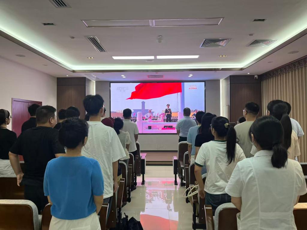9月3日上午,纪念中国人民抗日战争暨世界反法西斯战争胜利80周年阅兵式在北京天安门广场隆重举行。为深切缅怀革命先烈,弘扬抗战精神,增强同学们的责任感与集体荣誉感,规培生党总支组织全体党员在综合楼五楼会议室观看了阅兵典礼。
