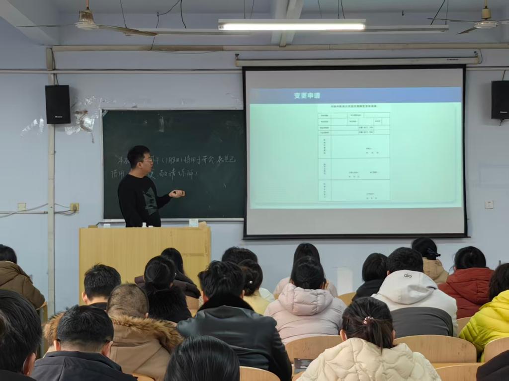为进一步规范期末考试组织流程,强化监考人员责任意识与业务能力,切实维护考试公平公正秩序,保障期末教学考核工作平稳有序推进,2026年1月6日下午,本科生教学办公室在教学办公楼405教室召开期末考试监考专题培训会。本科生教学办公室主任张仲博、副主任许培东主讲,全体期末考试监考人员参加培训。