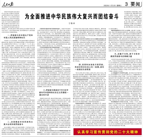 实现中华民族伟大复兴是近代以来中国人民最伟大的梦想,也是贯穿党的百年奋斗的鲜明主题。党的二十大立足新时代新征程的历史方位,深刻分析我国发展面临的形势和挑战,全面部署未来5年乃至更长时期党和国家事业发展的目标任务和大政方针,号召全党全军全国各族人民为全面推进中华民族伟大复兴而团结奋斗。我们要认真学习贯彻,深刻认识力量源于团结、事业成于奋斗,以更加紧密的团结、更加顽强的奋斗,把民族复兴的历史伟业不断推向前进。
