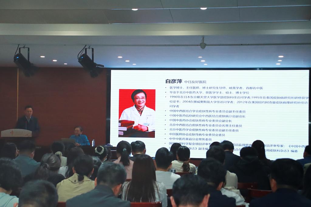 赵旭副院长首先介绍了白彦萍教授的学术成就与临床贡献。随后,白教授以《我的行医之路》为题,结合自身从医四十余载的深厚积淀,娓娓道来。她从1984年北京中医药大学毕业后入职中日友好医院讲起,回顾了在中医皮肤科领域不断求索的历程。讲座中,白教授系统阐释了中医原创思维中“取象运数、形神一体、气为一元”的深刻内涵,并以银屑病为例,生动展示了如何将“整体观”与“辨证论治”贯穿疑难皮肤病诊疗始终。她还分享了在“血分蕴湿”“皮肤血络”等理论创新方面的探索,以及“读经典、做临床、重视科研、守正创新”的治学心得,鼓励青年医师在传承中夯实根基,在创新中寻求突破。