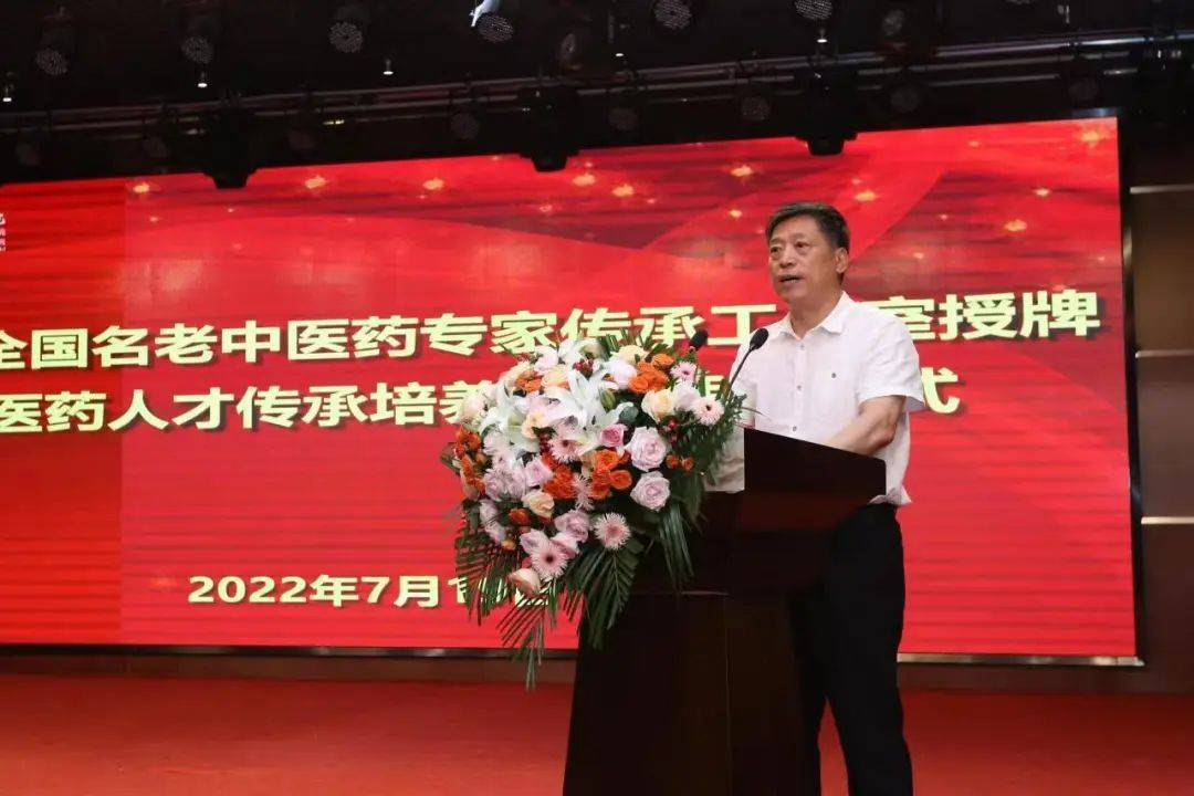 首先河南省卫生健康委中医处处长姬淅伟宣读河南省中医院入选“2022年全国名老中医药专家传承工作室建设项目专家名单”后,邓素玲教授、李鲜教授、何华教授、党中勤教授走上舞台,张若石、许二平为工作室授牌。